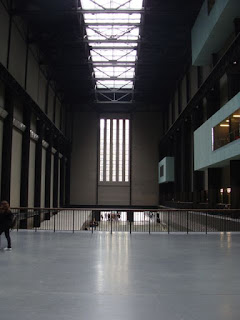The Tate Modern is just amazing. I came in on the second floor, and just looked at the Turbine Hall for a second. What really caught my eye was an installation by Miroslaw Balka, a huge iron box (that could hold at least a hundred or more people) sitting at the east end of the hall. Fabulous! I go up to the seventh floor (the elevator had a moment where all on board thought that we were truly going to die) and have a nice lunch in the restaurant (roasted duck confit, with potato purée, onions roasted in balsamic vinegar, and cress. It was quite delicious. The views from the restaurant are quite compelling as well.